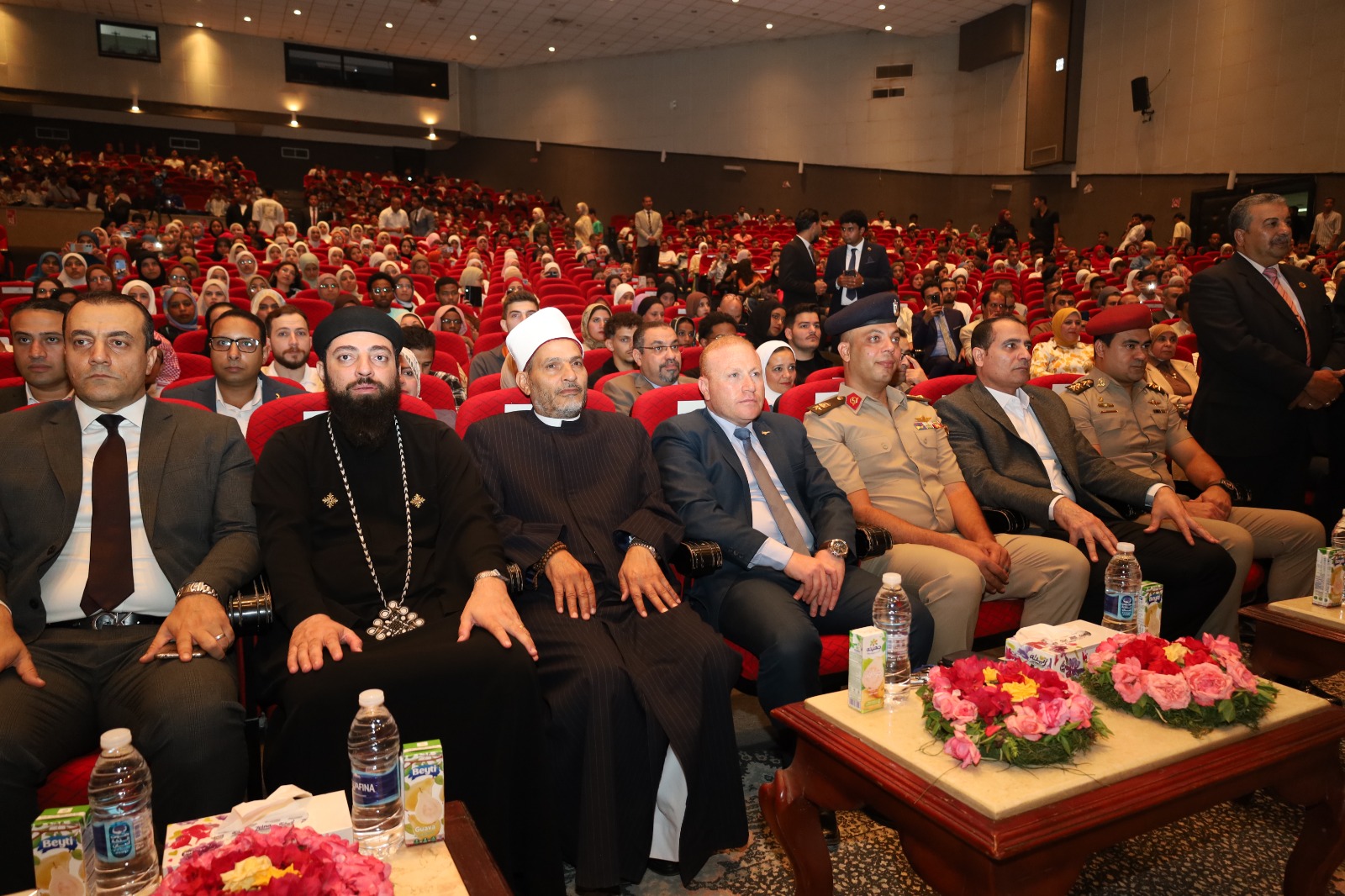 في أجواء وطنية مفعمة بالفخر والانتماء، وتزامنًا مع الاحتفال بذكرى انتصارات أكتوبر المجيدة، ومع توقيع وثيقة اتفاق شاملة بشأن إنهاء الحرب في غزة، برئاسة مشتركة بين فخامة الرئيس عبد الفتاح السيسي، ونظيره الأمريكي دونالد ترامب، والتي تهدف إلى إنهاء الحرب في قطاع غزة، وتعزيز جهود إحلال السلام والاستقرار في منطقة الشرق الأوسط، وفتح صفحة جديدة من الأمن والاستقرار الإقليمي؛ أقامت جامعة المنيا احتفالية كبرى بعنوان "مصر النصر والسلام"، برعاية وحضور الدكتور عصام فرحات رئيس الجامعة، واللواء عماد كدواني محافظ المنيا، وعدد من القيادات الأكاديمية والتنفيذية والأمنية والشعبية بالمحافظة، ابتهاجًا بهذين الحدثين اللذين يجسّدان قوة الإرادة المصرية في تحقيق النصر وصناعة السلام.