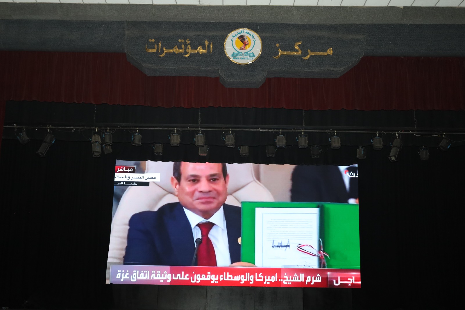 جامعة ومحافظة المنيا تقيمان احتفالية كبرى احتفاءً بانتصارات أكتوبر وتوقيع اتفاق إنهاء الحرب في غزة