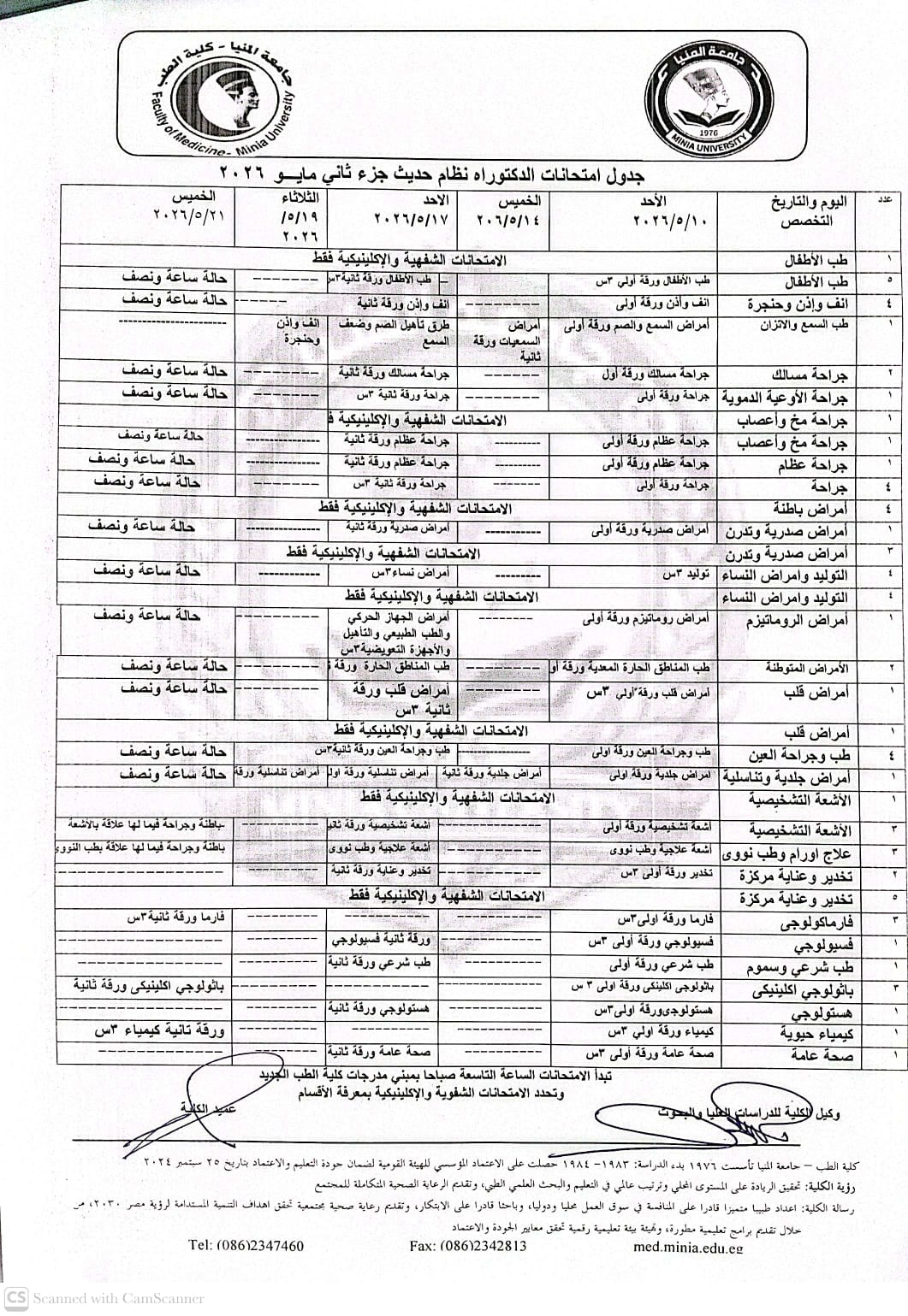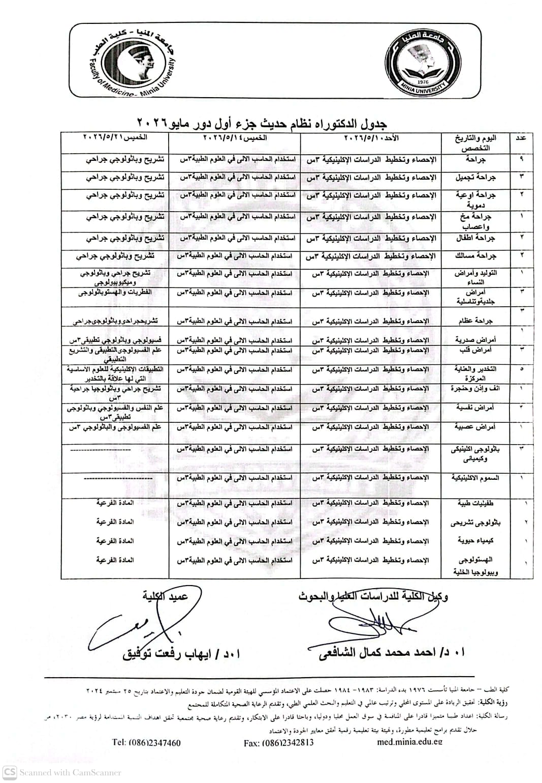 جدول امتحانات الدكتوراة جزء ثانى نظام حديث دورمايو 2026