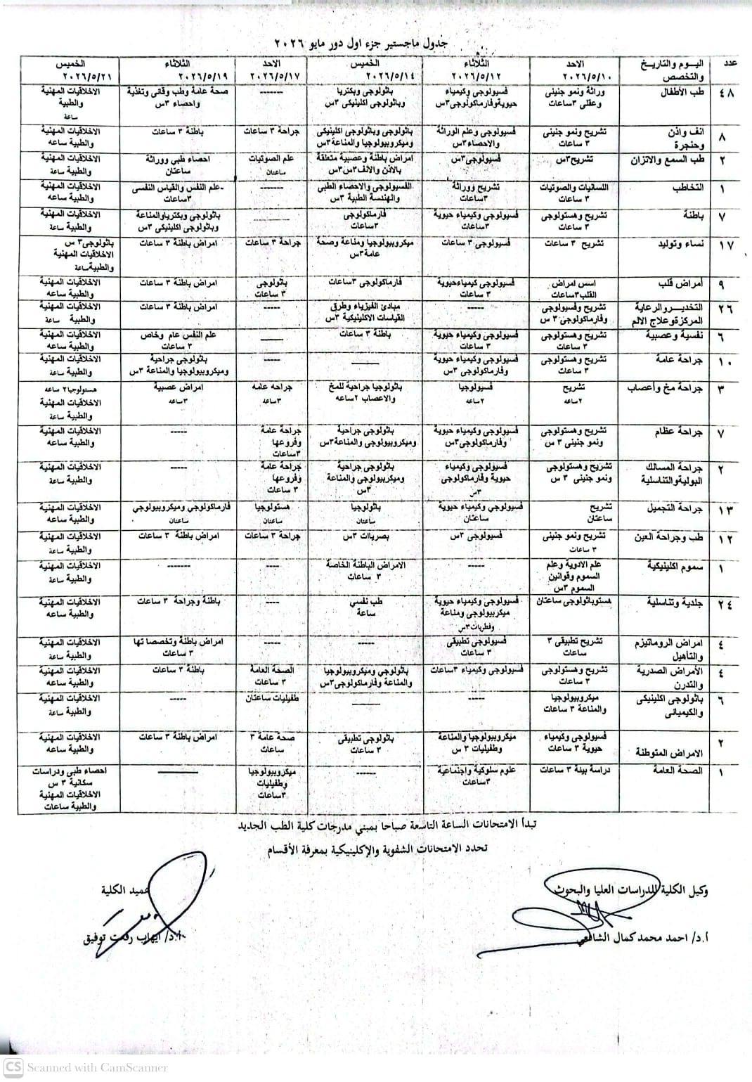 جدول امتحانات الماجستير الجزء الاول دورمايو 2026