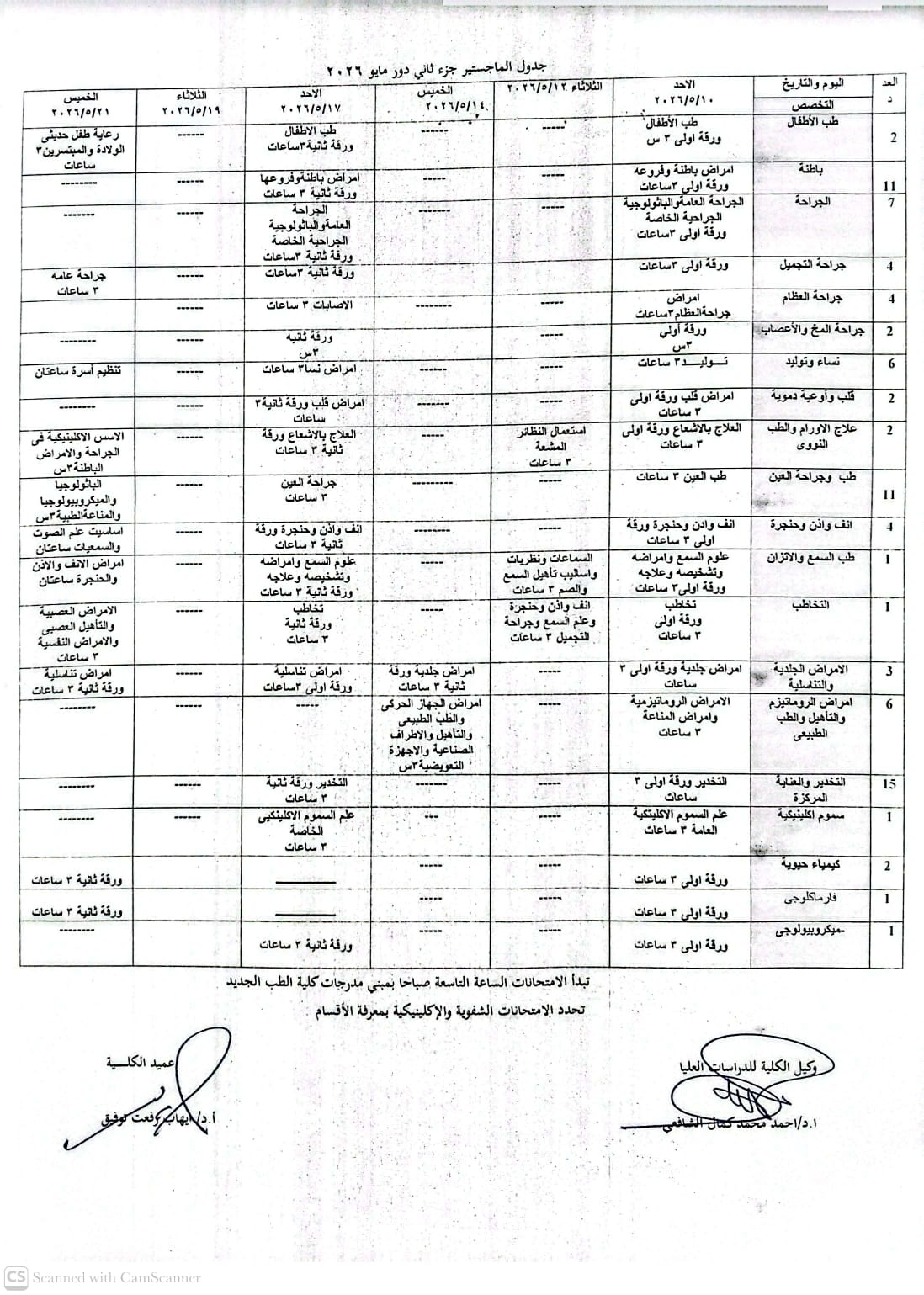 جدول امتحانات الماجستيرالجزء الثانى دور مايو 2026