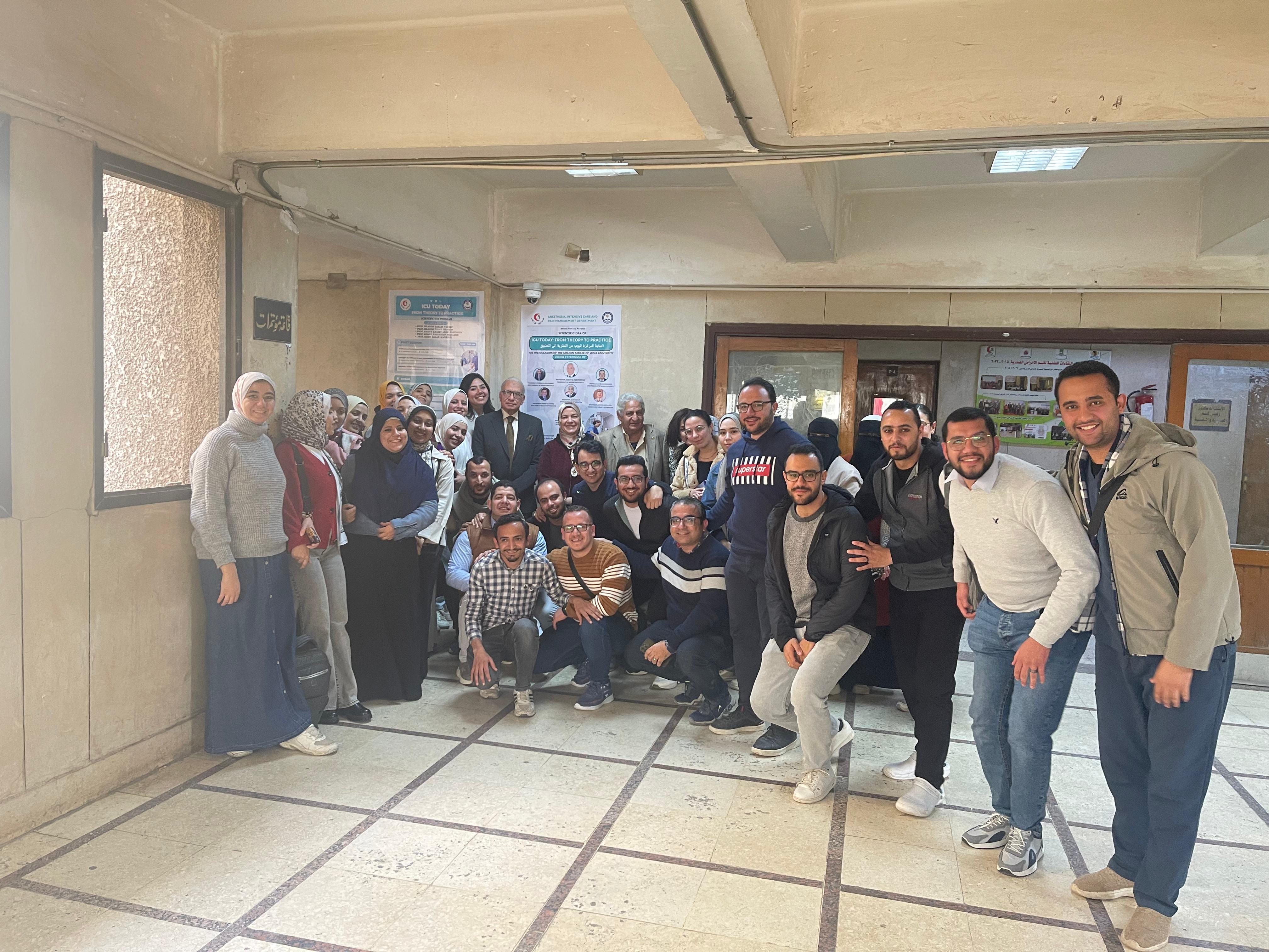 تزامنا مع احتفال جامعه المنيا باليوبيل الذهبي وتحت رعاية الأستاذ الدكتور / عصام الدين فرحات رئيس الجامعة ا.د. / ايمن حسنين نائب رئيس الجامعة لشئون البيئة ا.د. / حسام الدين شوقي نائب رئيس الجامعه للدراسات العليا ا.د. / ايهاب رفعت عميد كلية الطب ا.د. / احمد الشافعي وكيل الكلية لشؤون الدراسات العليا ا .د./ احمد عز وكيل الكليه لشؤون البيئة ا.د. / اميمه شحاته محمد رئيس قسم التخدير والرعايه المركزه وعالج الالم تمت بحمد الله فاعليات اليوم العلمي لقسم التخدير والرعاية المركزة وعالج الالم يوم السبت الموافق 7/ 2 /2026 تحت عنوان “ICU Today: From Theory to Practice” وقد ادار جلسات اليوم العلمي الأساتذه الافاضل: ا.د. ابراهيم عباس يوسف ا.د . ابراهيم طلعت ابراهيم ا.د. اماني خيري ابو الحسين ا.د. احمد حسنين محمد ا.د. هايدي صالح منصور وقد قام بالقاء المحاضرات نخبة من اعضاء هيئة التدريس المتميزين في مجال العناية المركزة، ام.د. خالد احمد عبده ا.م.د. جوزيف زكري عطيه ا.م.د. عمرو نادي عبد الرازق ام.د. علي طه عبد الوهاب د. محمد مصطفى علي د. محمد رضا محمود حيث تناول اليوم أحدث المستجدات العلمية والتطبيقات العملية، في إطار من النقاش العلمي البنّاء وتبادل الخبرات. وقد شهدت الفاعليات حضو را مشرفًا و تفاعالا مثمرا من الأطباء المشاركين، بما يعكس حرص القسم على دعم التعليم الطبي المستمر و الارتقاء بمستوى الأداء المهنى . اتوجه بخالص الشكر والتقدير لجميع السادة المحاضرين والحضور، مع التمنيات بمزيد من الفاعليات العلمية الناجحة مستقبًال.