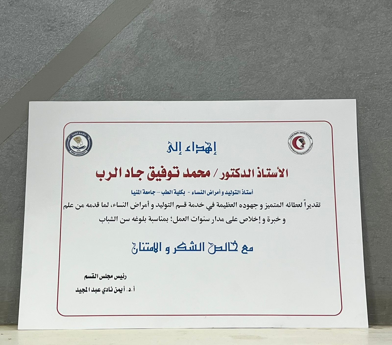 تكريم الاستاذ الدكتور / محمد توفيق جاد الرب.