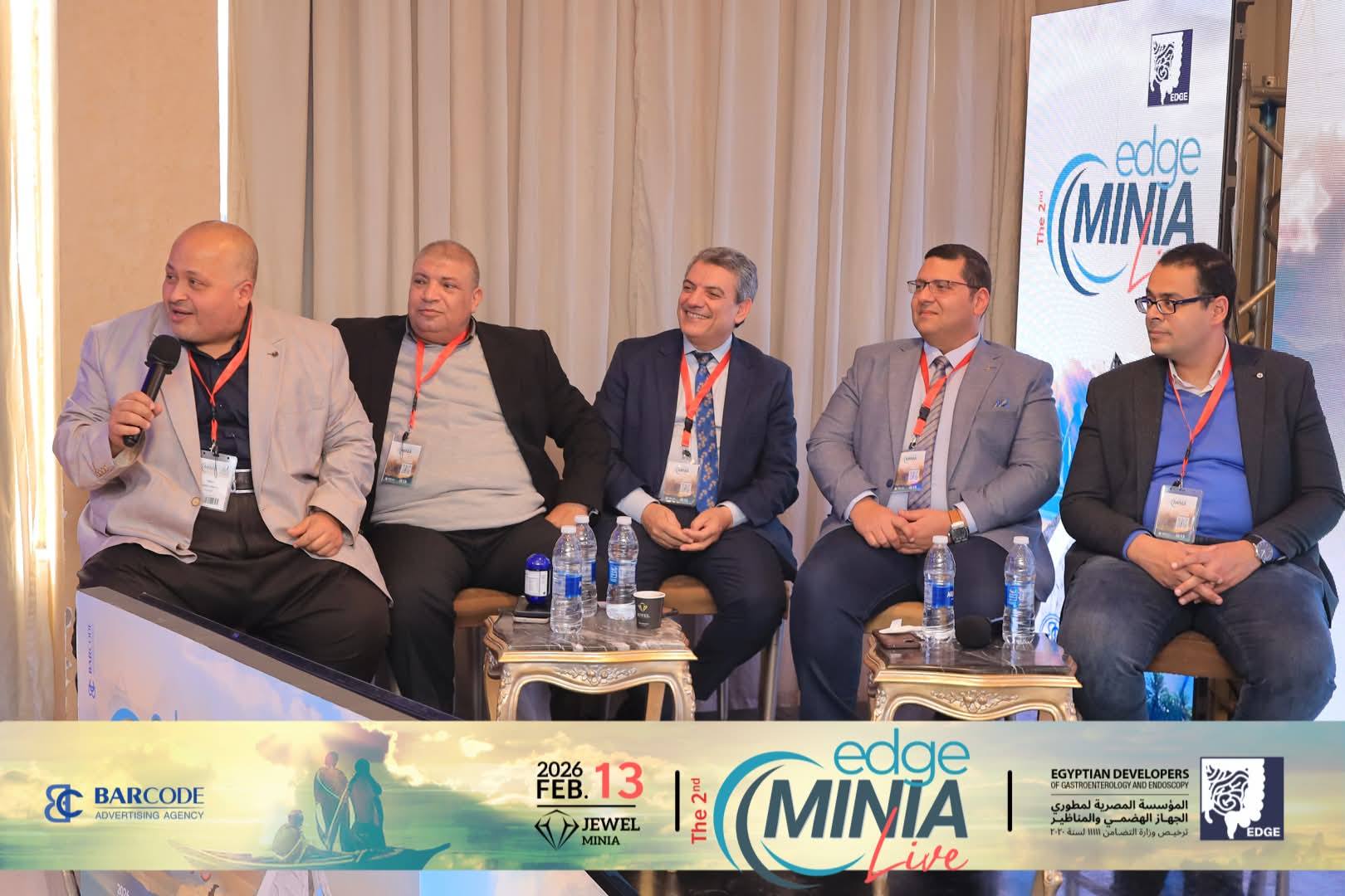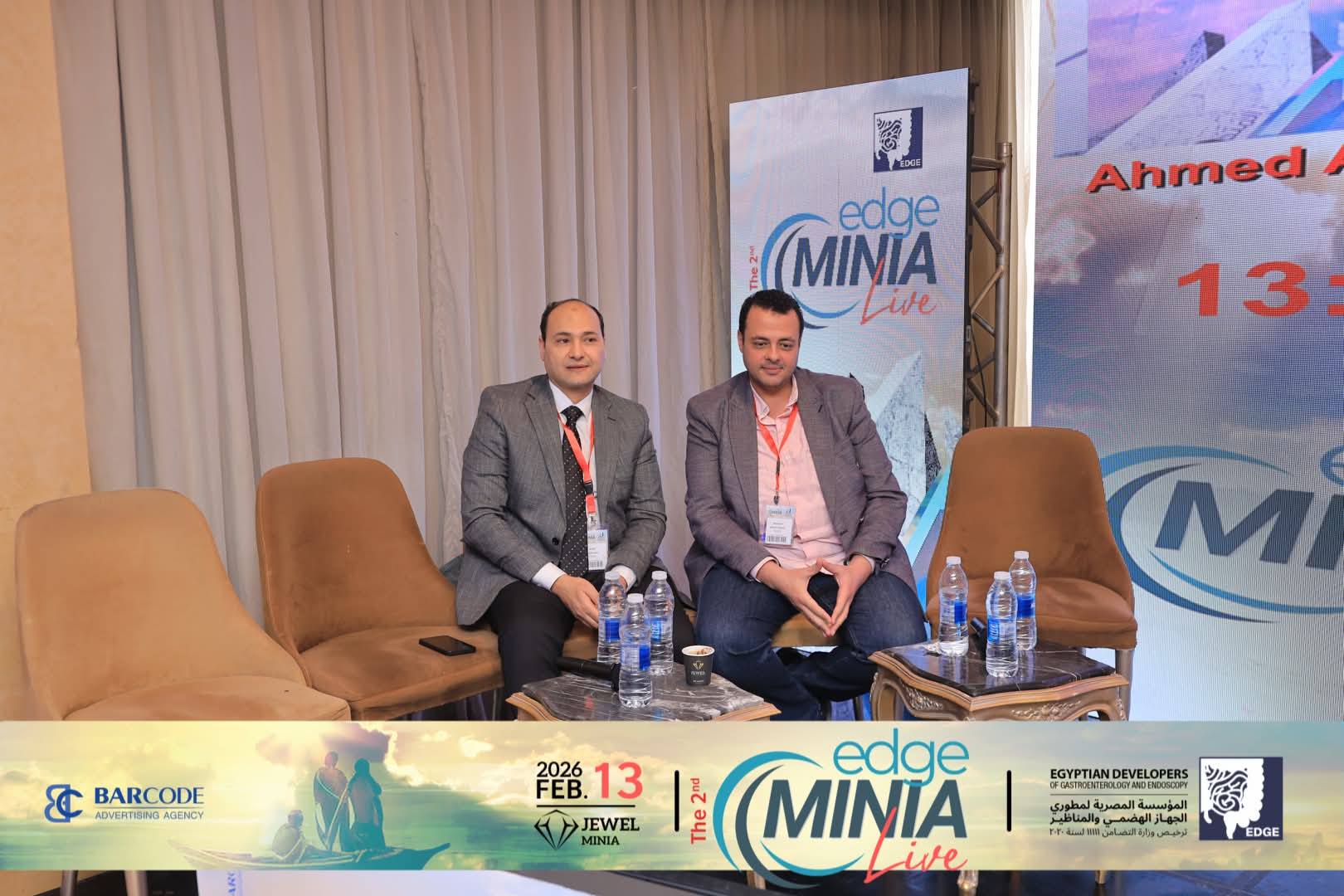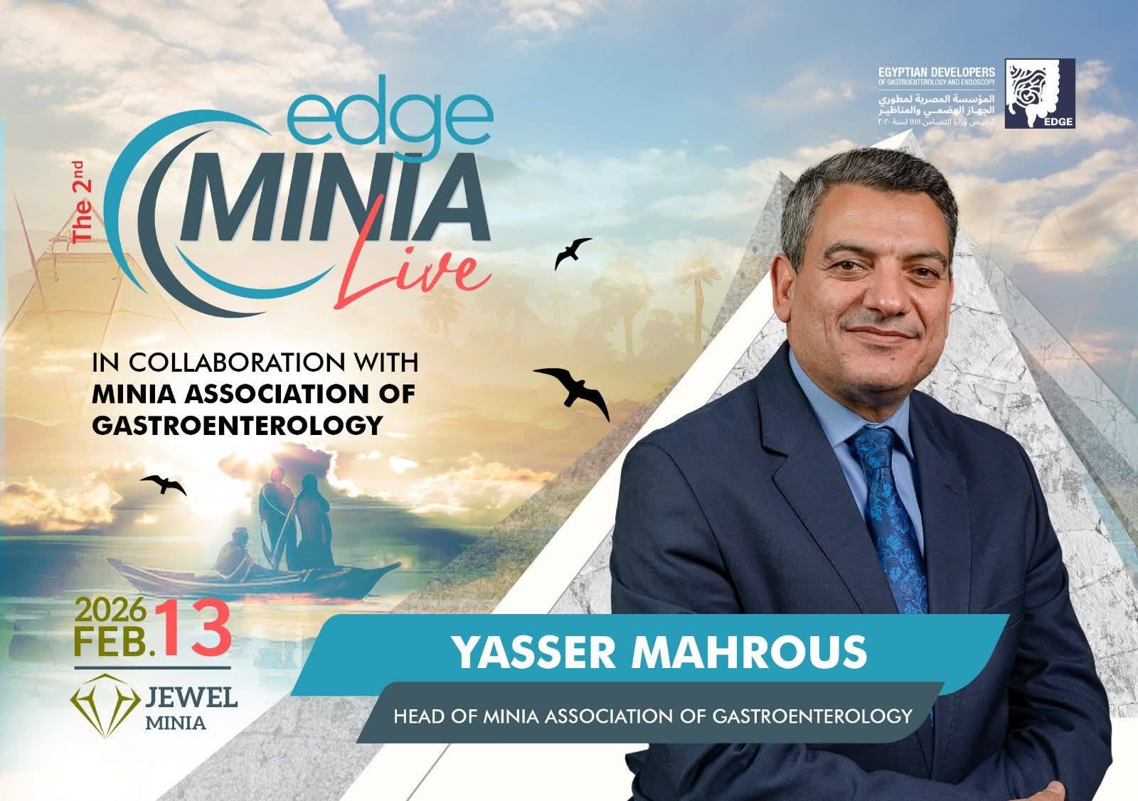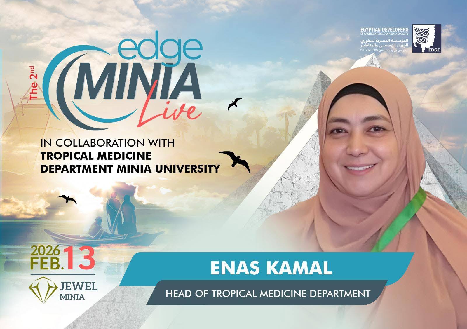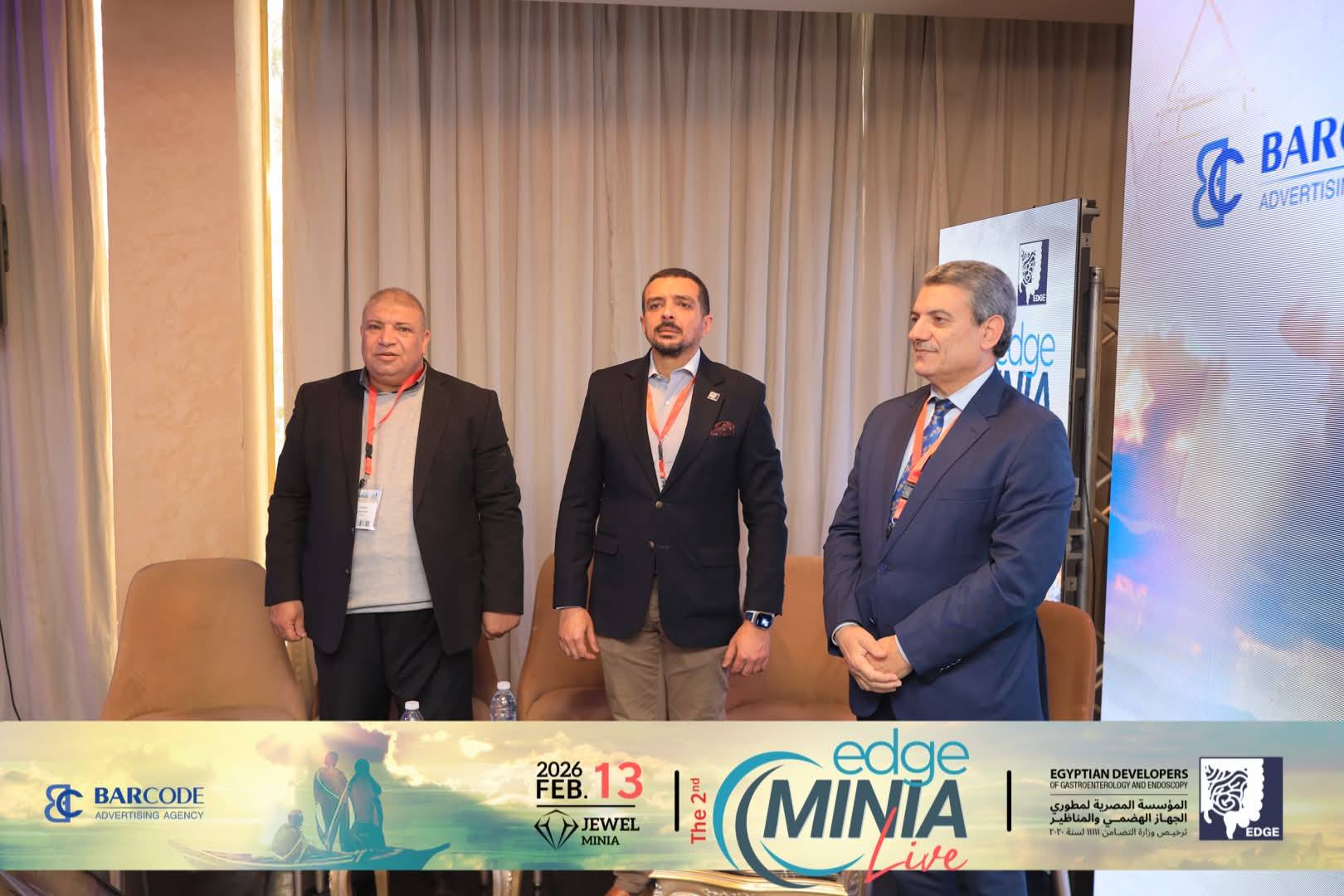 بمشاركة رابطة أطباء الجهاز الهضمى بالمنيا برئاسة الاستاذ الدكتور / ياسر محروس . وقسم الأمراض المتوطنه برئاسة الأستاذه الدكتوره / إيناس محمد كمال ، اقيم المؤتمر الثانى EDGE Minia بفندق جويل القوات المسلحه برئاسة الاستاذ الدكتور / احمد صلاح ابو العلا .وبمشاركة مجموعة الEDGE برئاسة الأستاذ الدكتور / محمد خورشيد . وقد عقد المؤتمر ورشة عمل لمناظير الجهاز الهضمى وتم نقلها على الهواء مباشرة من مستشفى المنيا الدولى الى قاعة المؤتمر بفندق جويل ... كما تناول المؤتمر عدد من الجلسات ناقش فيها مجموعه من الموضوعات الهامه فى تخصص الجهاز الهضمى والكبد وشارك فيها العديد من الأساتذه من جامعة المنيا ومختلف جامعات الجمهوريه